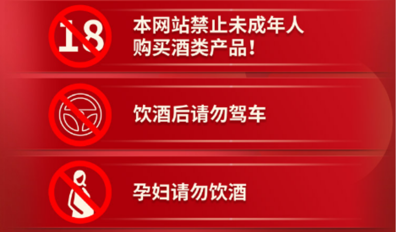 饮酒危害健康,合理饮酒,切勿过量;未成年人请勿购买酒类商品;孕妇、哺乳期妇女请勿饮酒;酒后请勿驾车。