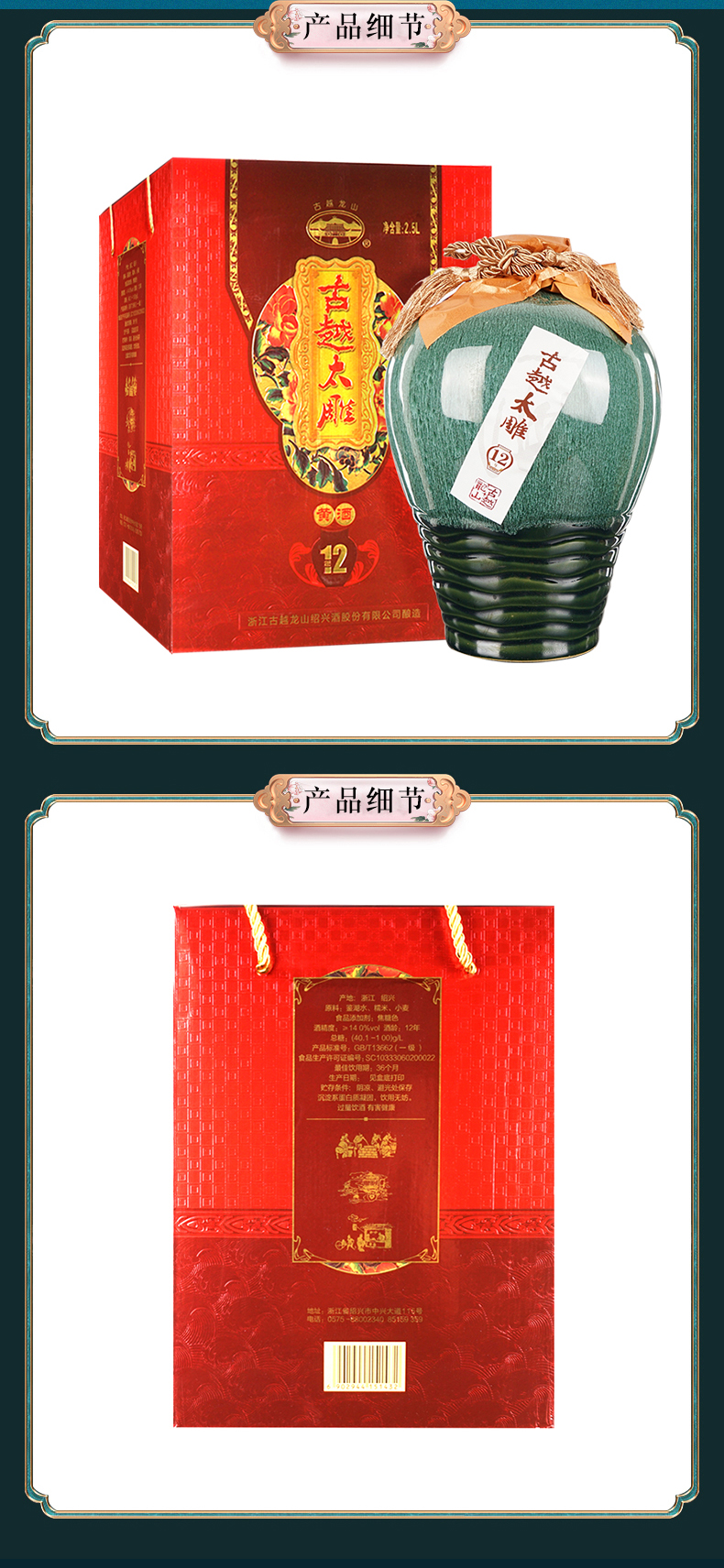 古越龙山十二年太雕黄酒 2.5L*1